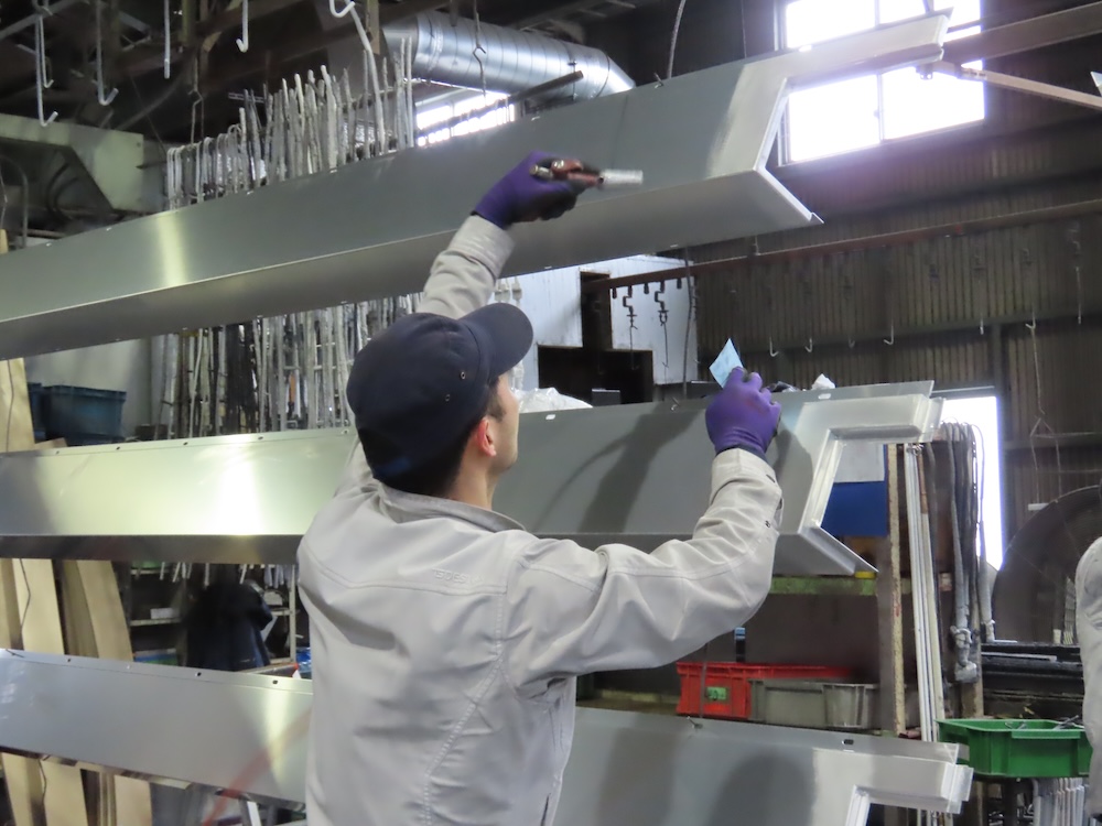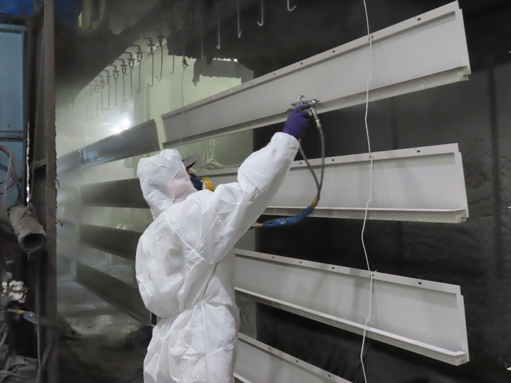カーテンウォールや建材塗装に必要な設備と技術を社内に備えています。